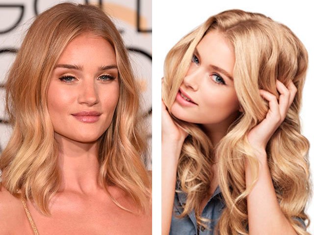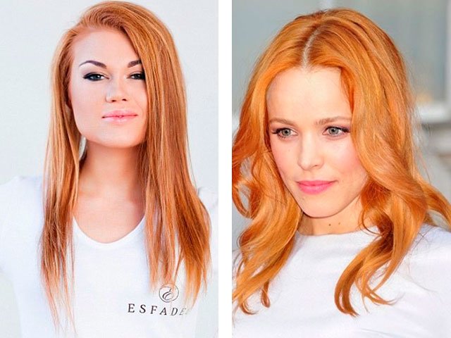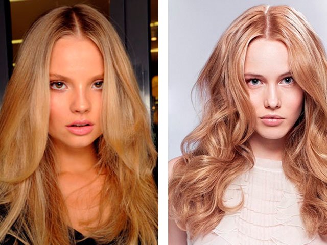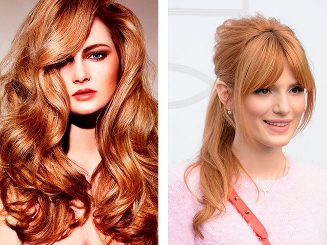 La couleur des cheveux blond cuivré est devenue populaire et est très combinée avec le printemps et l'été. Dans une telle teinte, les filles à la peau de pêche, aux yeux bleu-vert et aux lèvres pâles doivent être peintes. Les propriétaires de porcelaine aux yeux gris et aux boucles chaudes devraient également essayer cette gamme chaude.