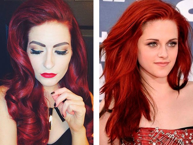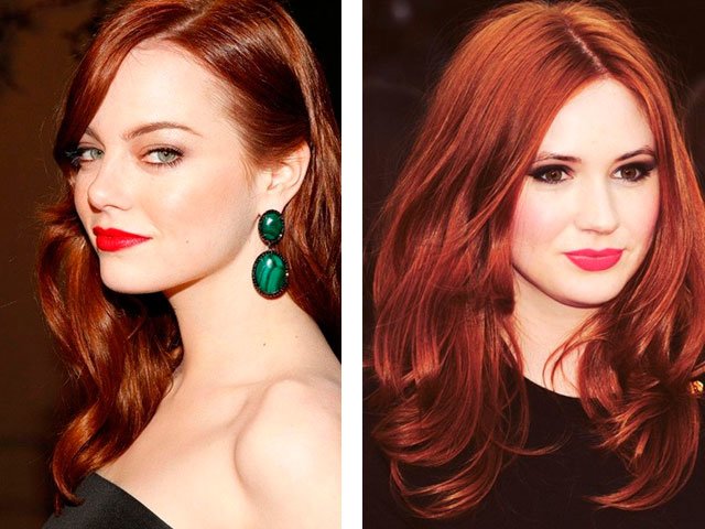 Pour les beautés à la peau sablonneuse, aux lèvres gonflées et aux yeux bleus, le rouge cuivré et le titian conviendront parfaitement. Une pile de cheveux brillants, combinée à des tons doux sur le visage, donnera une image magique et fabuleuse. À propos, il est très facile de peindre les cheveux clairs et foncés dans cette couleur, car ils sont très saturés. Il est possible de conserver une brillance naturelle avec un shampooing et un baume d'ombrage. Après tout, le principal inconvénient du rouge ardent est la perte rapide de couleur dans les boucles au fil du temps.