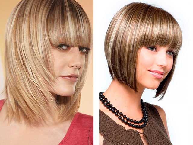 Kare avec frange et mettant en évidence sur les cheveux bruns