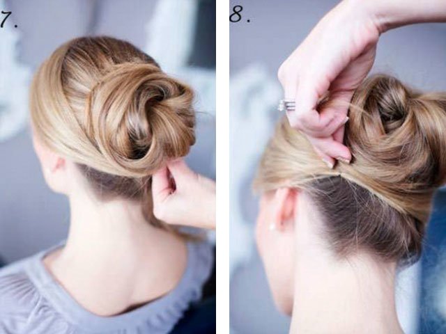 - Twist les cheveux dans la queue avec des épingles à cheveux ou un rouleau en mousse.