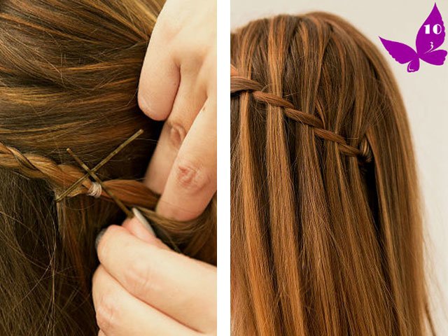 3. Ayant atteint la fin de la «cascade» de la manière décrite, fixez la tresse avec un élastique invisible.