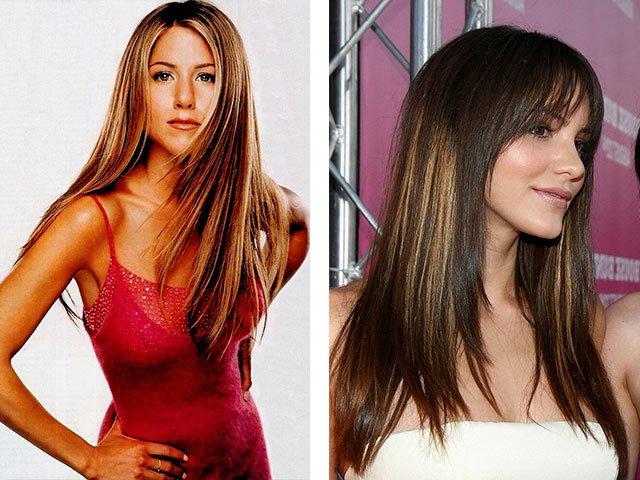 De longues boucles droites vont orner la cascade, mais si elles sont minces, il est à noter qu'une telle coupe de cheveux mettra en valeur la forme ronde du visage.