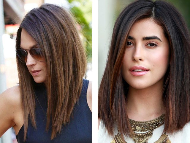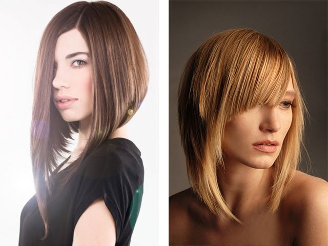 en se concentrant sur les lignes verticales, vous pouvez masquer les larges pommettes et les grandes joues; - une coupe de cheveux avec une frange asymétrique va également étirer votre visage;
