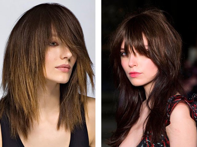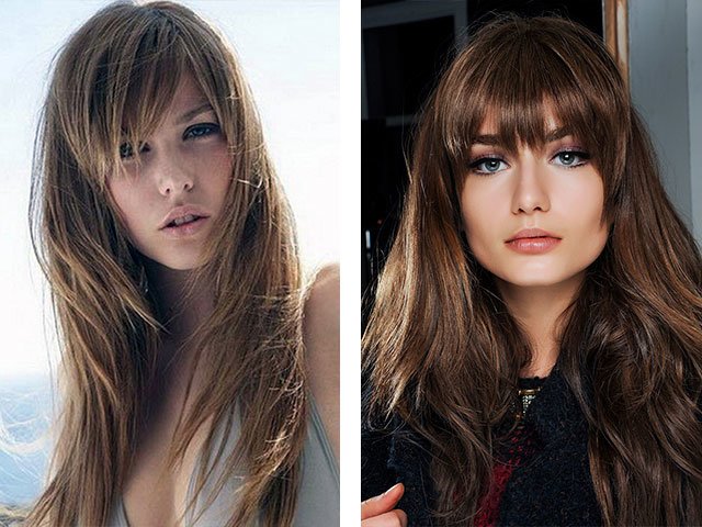 Coupe en cascade de cheveux longs avec une frange (photo 2024)