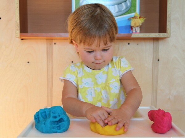 En soi, le jeu «Ice Cream Maker» est axé sur le développement du sensoriel chez les enfants. Et il est réalisé en utilisant de la pâte à la crème glacée. En même temps, les enfants participent à toutes les étapes du jeu.