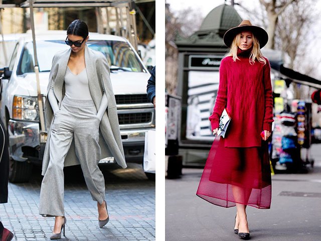 2. Monochrome. La présence du goût souligne la capacité de sélectionner correctement les tissus de la même couleur. Cela signifie que vous pouvez choisir et avez même besoin de jouer avec des textures. Avec le bon choix, ils ont fière allure: jeans et soie, tricots et daim, cuir et laine, etc.