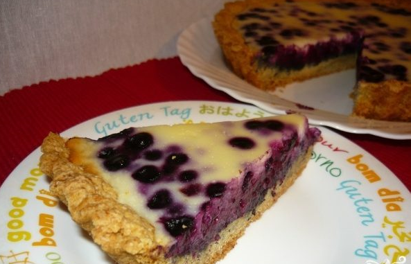 Étape 3 Après environ 15 minutes, le gâteau peut être retiré du four. Refroidissez, mettez dessus les baies et versez le mélange. Mettez au four encore 15-20 minutes.