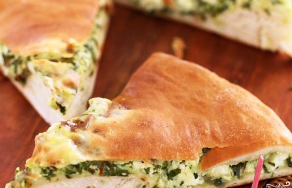 Étape 3 Divisez la pâte en 3-5 parties. Le nombre de tartes doit être étrange, car les Ossètes font cuire un nombre pair de tartes uniquement pour les funérailles - sinon, cela est considéré comme un mauvais présage. Aplatir chaque partie de la pâte avec un doigt dans un gâteau et placer une partie de la farce en son centre.