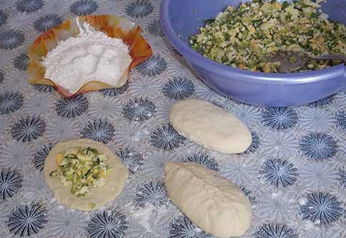 Étape 7 Ensuite, vous devez essayer d’intégrer plus d’œufs avec des oignons verts dans le minimum de pâte. Appuyez fermement sur les bords de la pâte avec les doigts pour que le remplissage ne déborde pas lors de la friture.