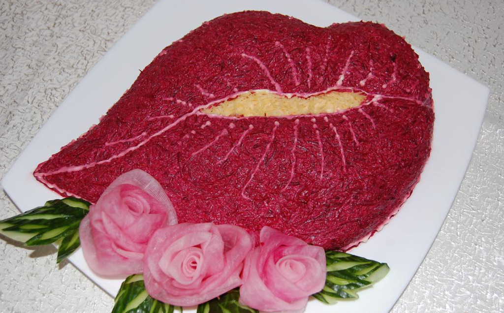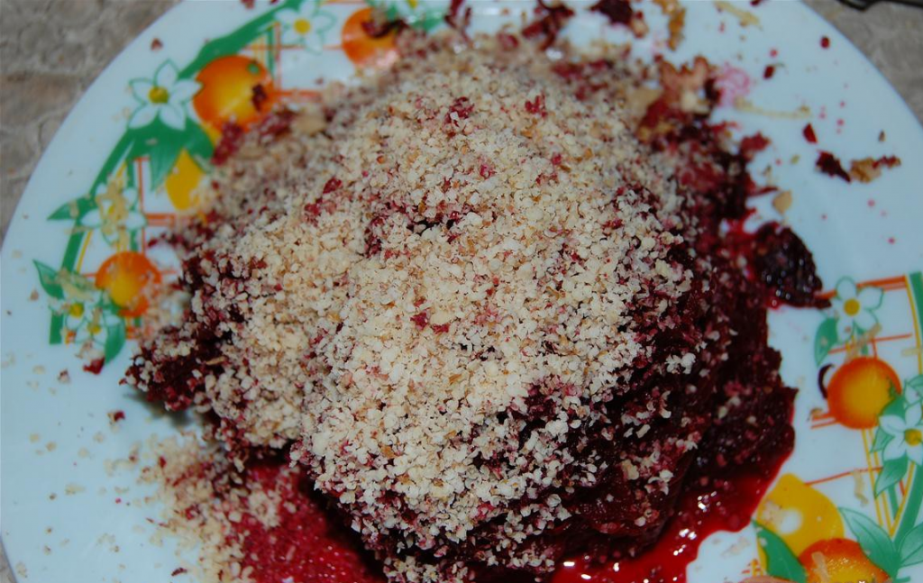 Étape 11Mettez les betteraves avec les noix dans une troisième couche, formant les lèvres.