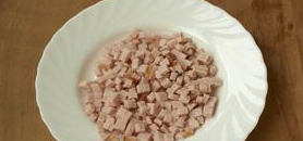 Étape 2 Couper le jambon en cubes.