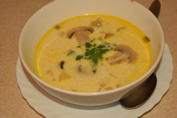 La soupe est prête à manger. Et si vous n’aimez pas cela, appelez votre ami végétarien et nourrissez-le soupe au fromage et aux champignons.