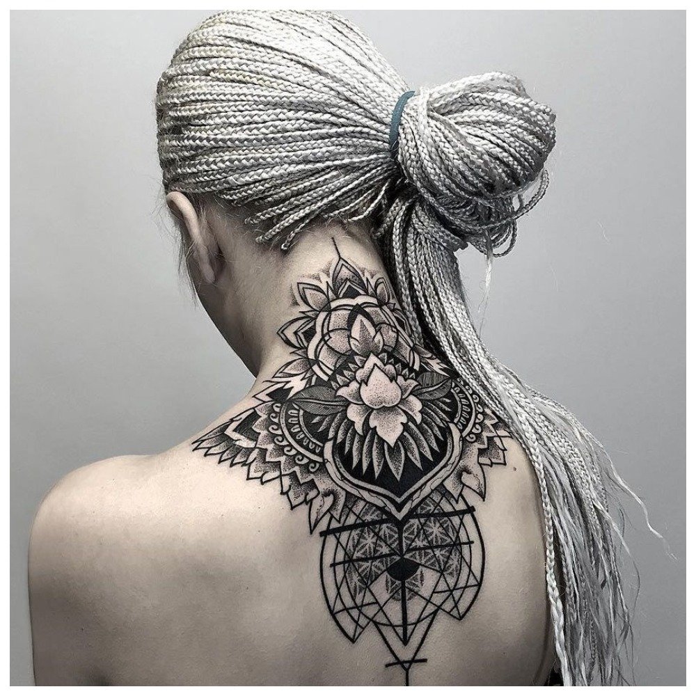 Dos du cou le plus souvent utilisé pour mettre une inscription personnelle ou un symbole secret. Les filles, si elles sont fatiguées d’un tatouage sur la nuque, pourront le cacher sous leurs cheveux lâches.