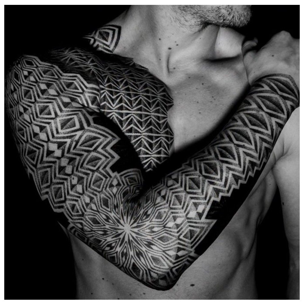 La technique du blackwork convient aux adeptes du minimalisme et des tatouages noirs. Depuis Blackwork se concentre sur la conception minimale, souvent sous la forme de motifs et de motifs, et de grandes zones encrassées avec de la peinture noire.
