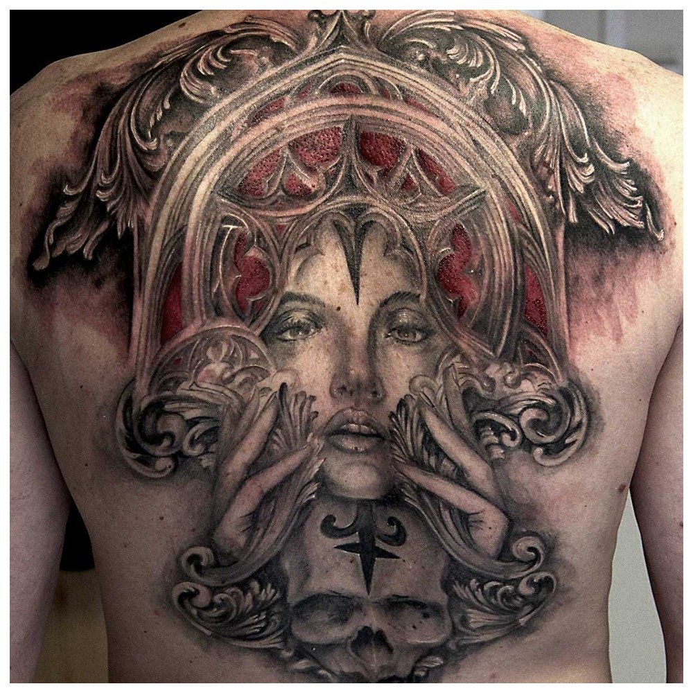 Le style gothique est connu depuis longtemps, il était particulièrement courant en 2006-2007. Cependant, la mode pour les tatouages gothiques a survécu à ce jour. Le style de tatouage gothique est une combinaison de couleurs sombres (noir, gris foncé, violet et rouge) et d'images sombres. Parmi les images les plus populaires de la technique "gothique" figurent: