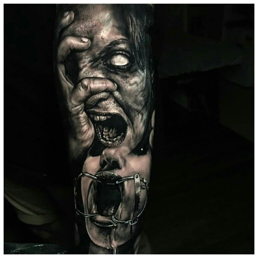 Outre le style gothique, on peut également considérer une technique aussi inhabituelle que l’horreur, qui, traduite de l’anglais, signifie horreur. Le genre de l’horreur se réfère généralement directement à des films ou à des jeux, mais il a également gagné des adeptes dans le domaine des arts corporels. L'horreur peut même être attribuée à une sous-espèce de tatouages gothiques.