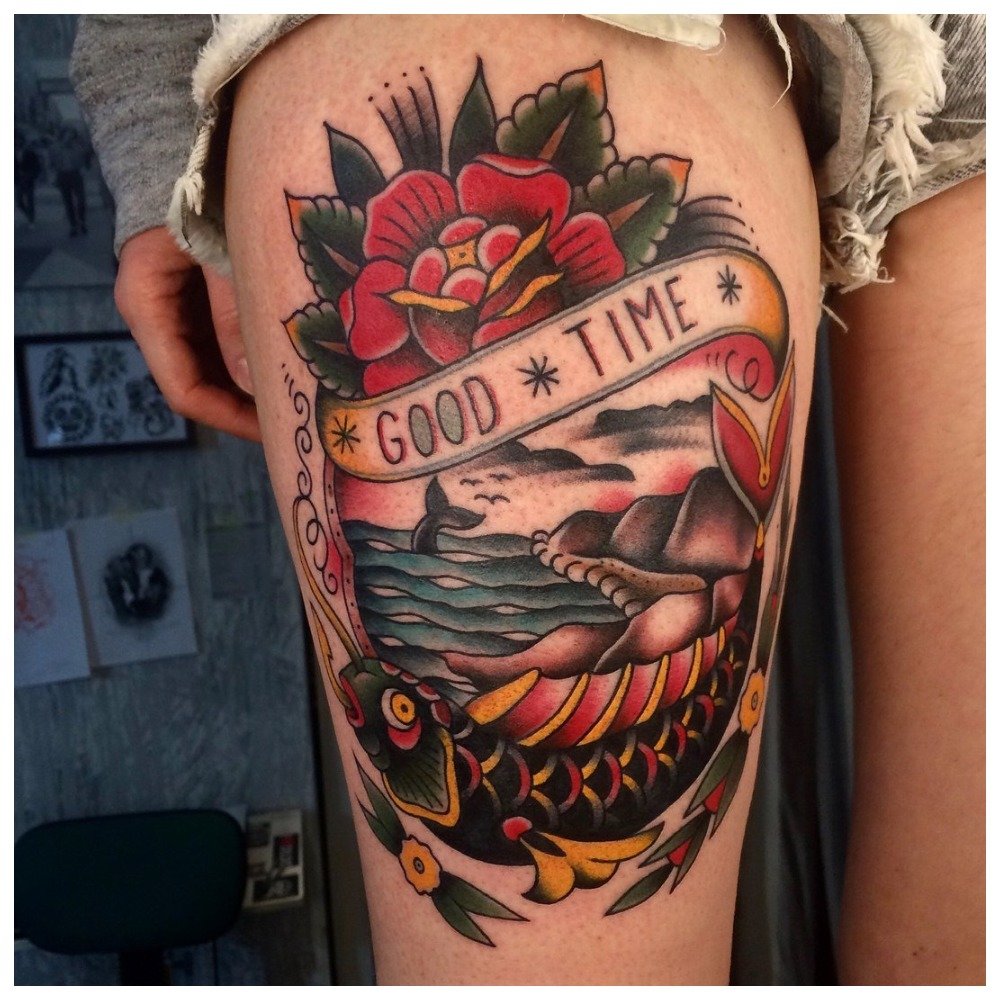 La vieille école ou la "vieille école" du monde du tatouage se distingue par ses couleurs vives et son contour noir épais. Ce style est apparu il y a longtemps, c'est pourquoi il est considéré comme l'un des fondamentaux.