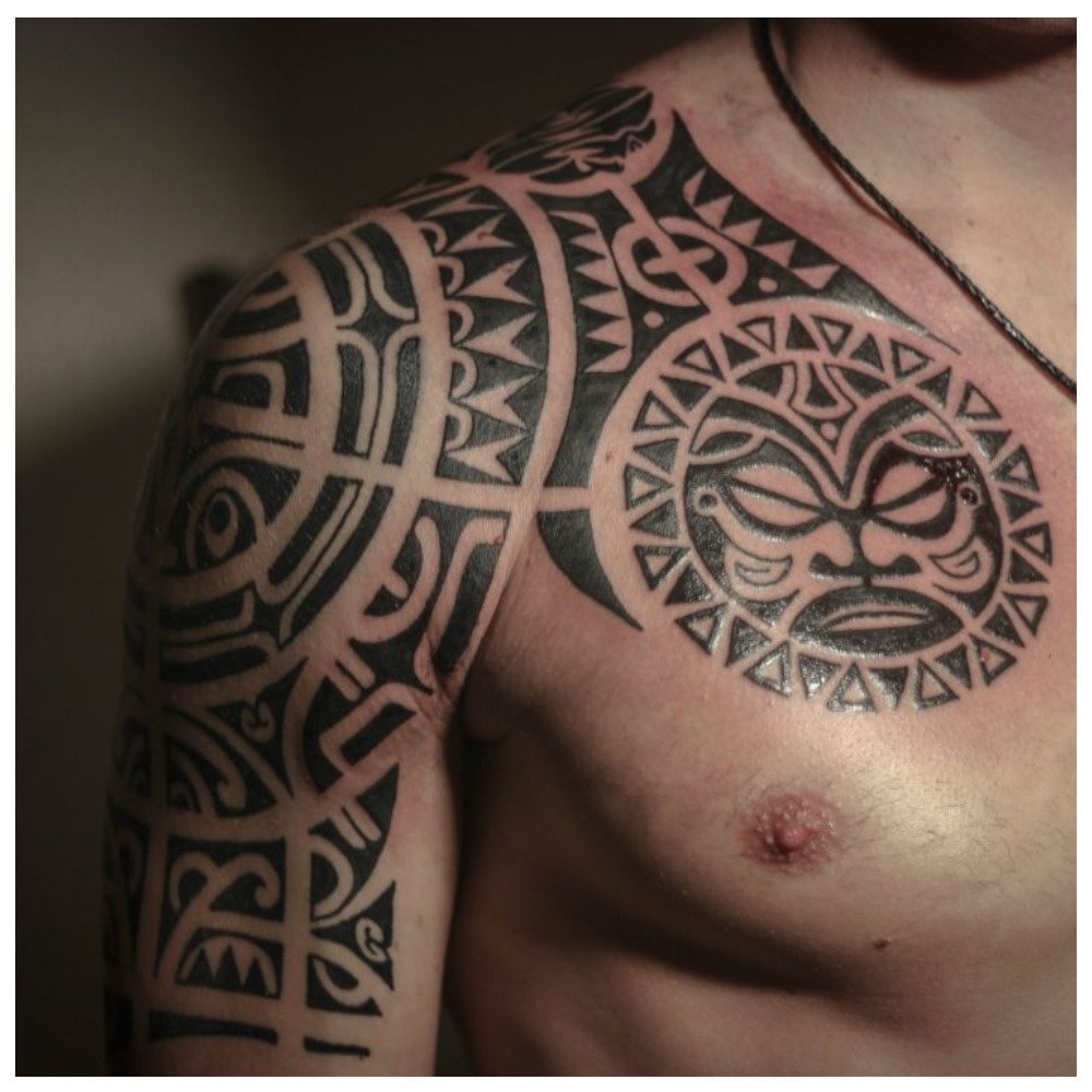Une autre variété de tatouages ethniques est la technique polynésienne. Le dessin réalisé dans ce style se distingue par la symétrie, la rigueur et la précision de l'ornement.