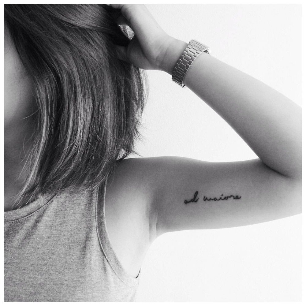 La police est sélectionnée individuellement, en fonction du lieu de tatouage et du texte lui-même. Cela peut être une police classique voire italique ou calligraphique, alors que les hommes préfèrent les options gothiques.