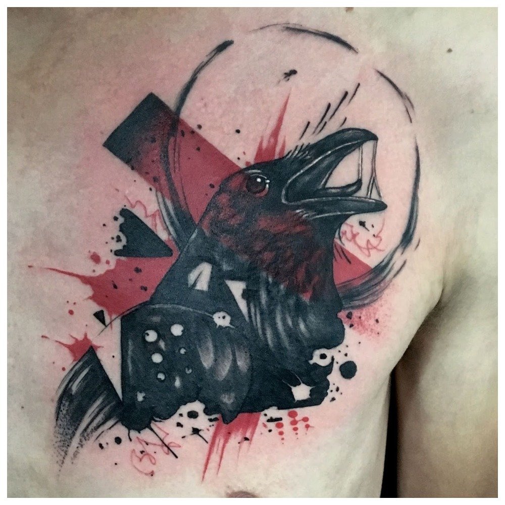 En outre, un tatouage à l'aquarelle peut avoir un contour clairement défini, mais le plus souvent, il est dessiné dans son style relatif à partir d'un contour flou, de points, de traits et de taches. Tout cela a l'air original et à la mode.