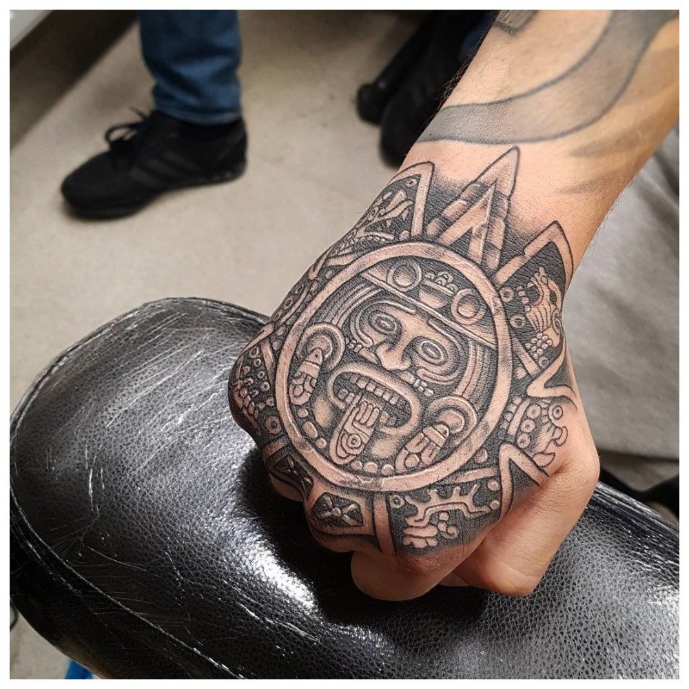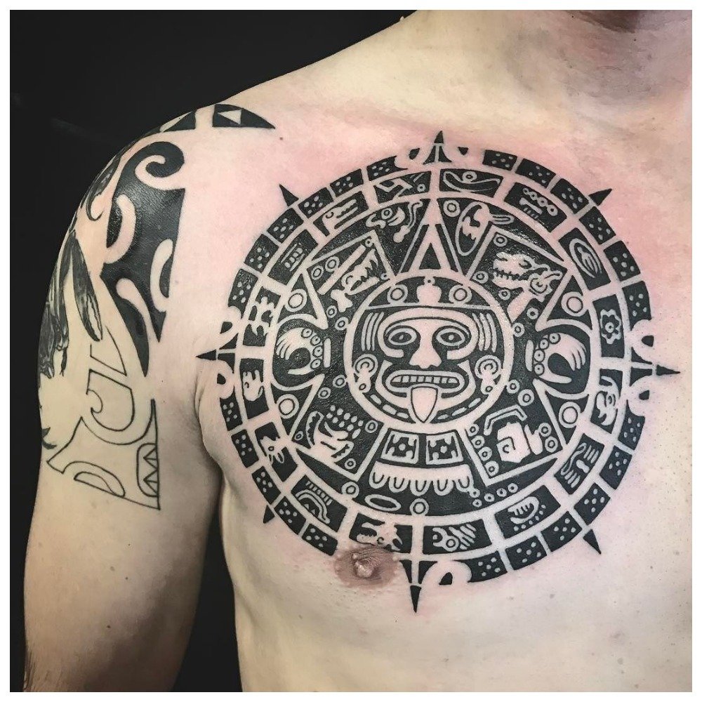 Les Mayas représentaient souvent sur leurs corps les images des dieux en lesquels ils croyaient. Les tatouages étaient principalement noirs et blancs et très grands. Aux Aztèques, le style d'application était de couleur différente, les tatouages pouvaient être de toutes les nuances. Ils ont également privilégié les dessins de scènes sanglantes, de pyramides, de crânes et du dieu de la mort.