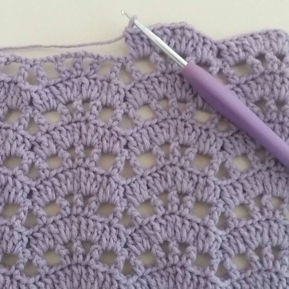 - Translucide avec des emplacements vides, le motif est tricoté dans la plupart des cas en boucles à air avec des poteaux (de connexion ou au crochet) formant un lien avec les autres rangées.