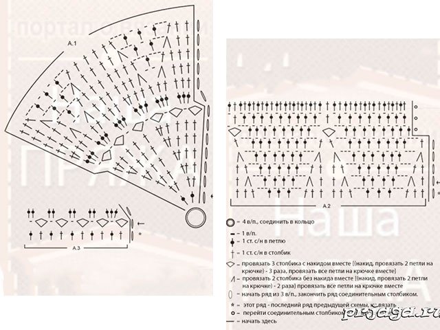 Pour obtenir belle place plate - dans chaque rangée faire des augmentations dans 4 coins: 2 S.T., 2 V.P. 2 S.T. Dans ce qui suit, R. Hook est présenté sous V.P. Ceci est une version plus rustique, mais convient également à la ville, si vous modifiez le style de tricot.