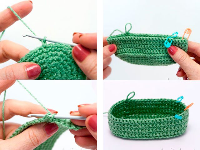 Nous fermons la rangée avec une colonne de liaison, retournons le travail et tricotons la rangée suivante. Ensuite, nous continuons à tricoter avec des crochets de 7 autres rangs. La partie latérale totale est de 8 rangées. La hauteur du côté peut être de 2 à 3 cm, dans notre cas 3 cm.