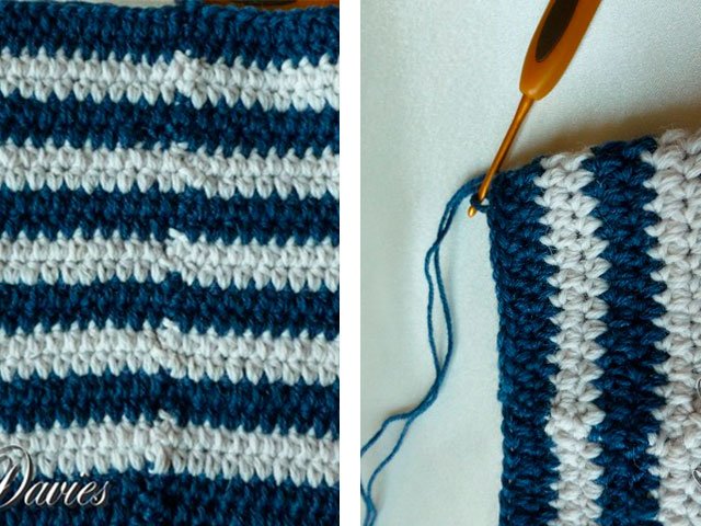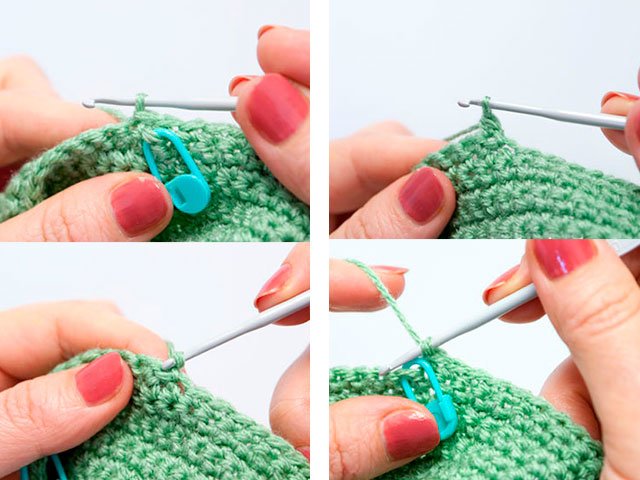 1 rangée: points de suture au crochet doubles