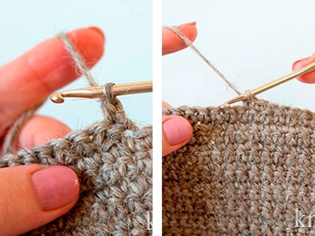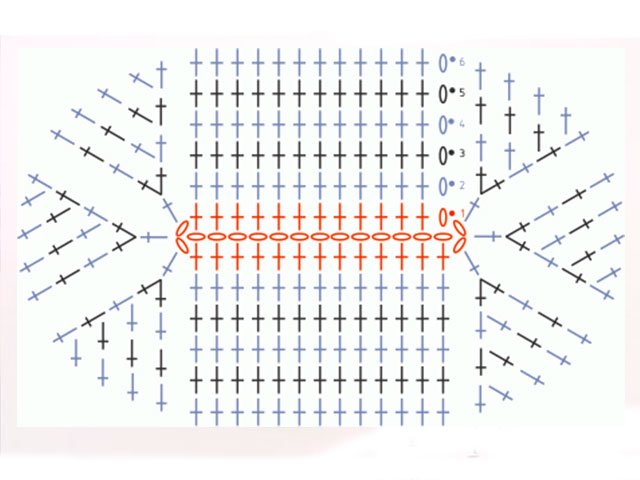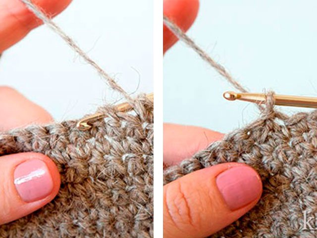 3-16 rangées: 2 po point de levage, * colonne avant en relief dans la colonne en relief de la rangée précédente, double crochet dans la colonne crochetée de la rangée précédente *, répétez de * à * jusqu'à la fin de la rangée.