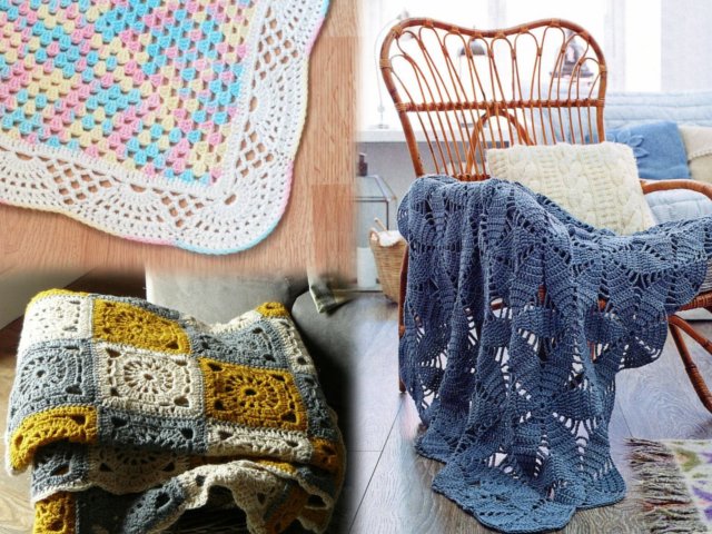 Les couvertures au crochet ne sont pas moins intéressantes que aiguilles à tricoter. Certaines artisanes préfèrent tricoter de gros articles avec un crochet, car la particularité de cette méthode vous permet de réaliser de superbes motifs ajourés sur des plaids et un travail délicat, presque bijoutier, qui incite les fans à créer de superbes choses avec des détails.