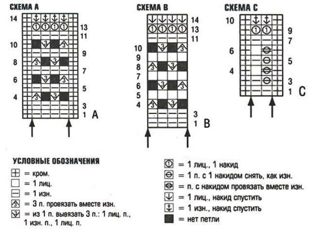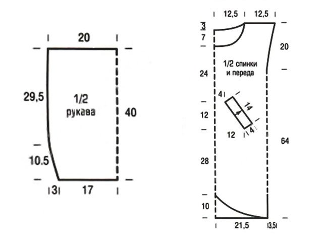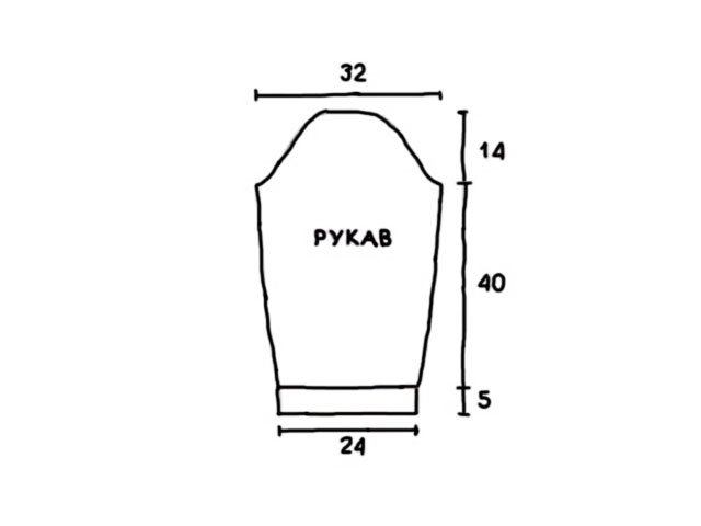 Suivant: l'élastique 2 × 2. Après 5 cm du bord défini, tricoter 1 mauvais p, 36 p avec le «motif principal» et 1 mauvais p, en ajoutant les deux côtés de chaque 14 rangée, en faisant 5 p d'une boutonnière (5x1) et en tricotant les boucles ajoutées du mauvais côté. À environ 40 cm de l’élastique de l’okata, fermez les manches des deux côtés de chaque 2ème rangée, en tricotant 4 p ensemble (1x4) et 13 à partir de un (13x1). Après 14 cm du début de la manche, fermer les 14 p restants.
