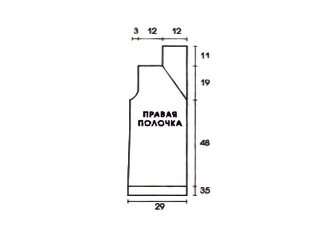 Après 19 cm du début du biseau, les emmanchures doivent être fermées à gauche pour l'épaule 1x18 et le reste doit être tricoté selon le motif (col); après 11 cm, fermez toutes les boucles.