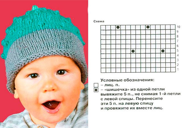 Chapeau d'enfant pour le garçon pour l'hiver Vous pouvez apprendre à tricoter en quelques heures. Pour ce faire, vous avez besoin d’un bon schéma clair et d’une description claire du processus lui-même. Si vous le souhaitez, vous pouvez créer un lien dans le kit: Bonnets et écharpes, bottillons, mitaines - n'importe quoi pour habiller votre bébé!