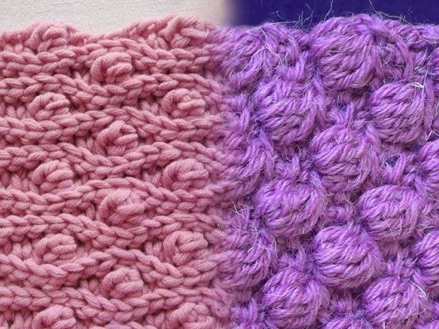 La deuxième rangée est encore plus facile à tricoter, il n’est pas nécessaire de compter, toutes les "bosses" s’insèrent dans une boucle dans les espaces entre les "bosses" de la rangée précédente.
