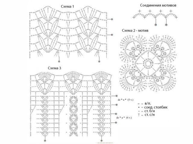 Ceinture: tricotez 6 motifs selon le schéma 2. Connectez les motifs avec une bande, reliez-les à la toile principale comme sur la photo. Connectez-vous dans une rangée circulaire.