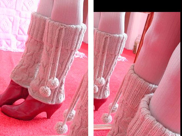 Nous fabriquons des leggings simples de 40 cm de long, nous avons besoin de: 150 g. L'élastique est fait 2 par 2 (2 ch * 2 ip), puis on tricote la pièce principale (voir 30) en alternant p. - premier p. seulement visage après que seamy. À la fin, nous tricotons à nouveau un élastique 2 * 2 par 6 centimètres et fermons les boucles. Accessoire de mode est prêt!
