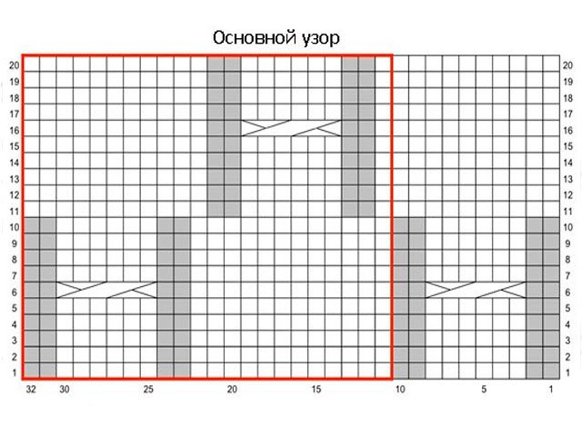6. Suivant p .: 2 ip, 2 hp 1 fois, trace 12 m Tricoter avec un motif pour la tresse au dos, 2 CV, 2 IP 1 fois, 2 personnes., Tricoter avec le motif principal