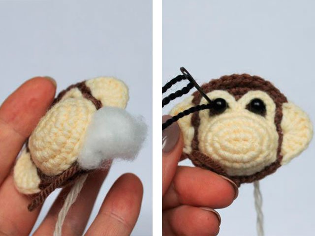 Quand on tricote des jouets crochet, il est très pratique de travailler avec des diagrammes et une description simple. Nous allons vous dire comment créer de belles singe tricoté, qui peut ensuite être utilisé comme une broche ou comment porte-clésou coudre quelque part. Pour elle, vous aurez besoin de: Fil, crochet, aiguille, fil noir et perles marron et beige pour les yeux. Si vous voulez en faire une broche, prenez le mécanisme de la broche. Cette classe de maître au crochet peut être interprétée de différentes manières.