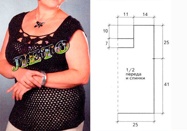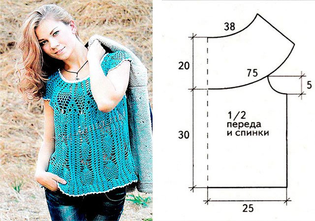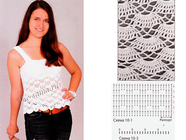 Ensuite, nous décrivons plusieurs options pour les hauts: pour les femmes en surpoids de grande taille, à partir de motifs, modèles ajourés, avec un motif d'ananas, des magazines japonais.