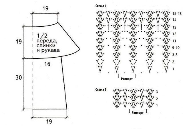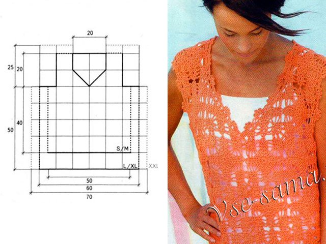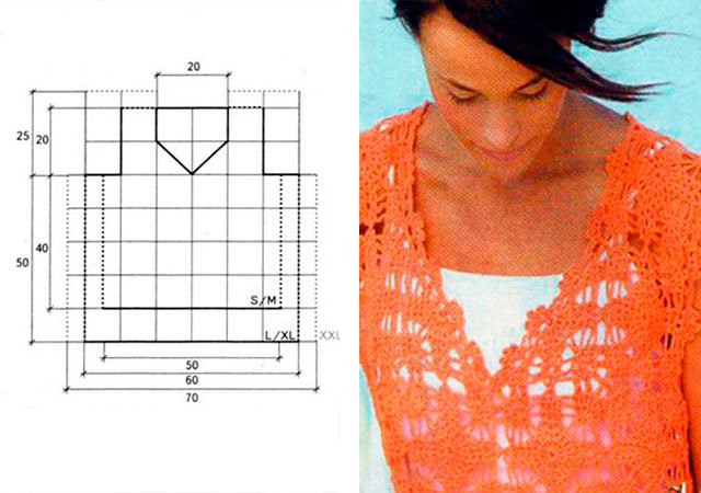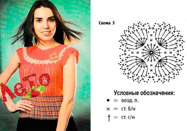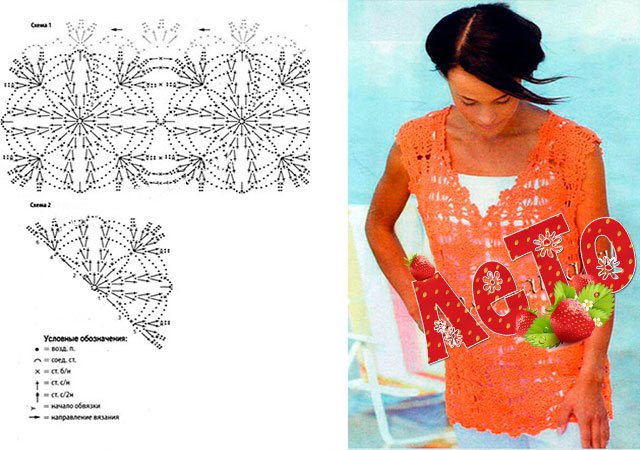 Cette saison, les hauts, les blouses, les t-shirts et les vestes au crochet ont repris leur place. Vous pouvez les trouver dans toutes les boutiques de mode avec des vêtements, mais il est préférable de nouer une telle chose vous-même. Pour ce faire, il existe de nombreuses master classes détaillées, tutoriels vidéo, descriptions étape par étape et schémas détaillés (C / X). Elles seront maîtrisées à la fois par les aiguilleuses expérimentées et par les débutantes.