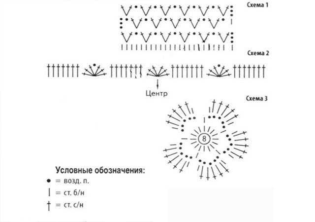 Les emmanchures et le bord inférieur sont noués, ainsi que le cou de S.B.N. Vous pouvez faire des fleurs pour la décoration selon le schéma trois, cela est facultatif.