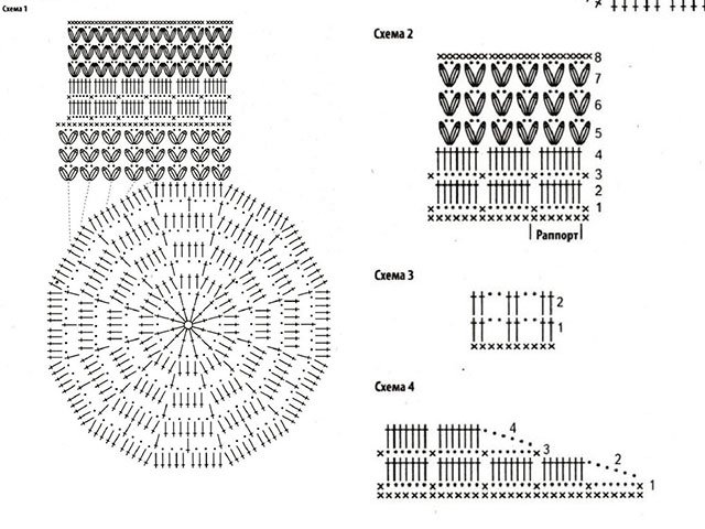 - motif numéro 2: selon le schéma un - 1 - 5 R. Quand vous arrivez à la sixième rangée - commencez à connecter le motif au précédent. De cette manière simple, combinez tous les motifs par analogie.