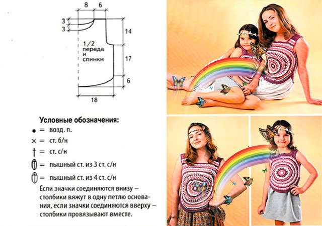 Haut pour enfants pour une fille de 4-5 ans. Vous aurez besoin de: du fil multicolore (nous avons les couleurs rose, blanc et violet) et du crochet numéro 3.