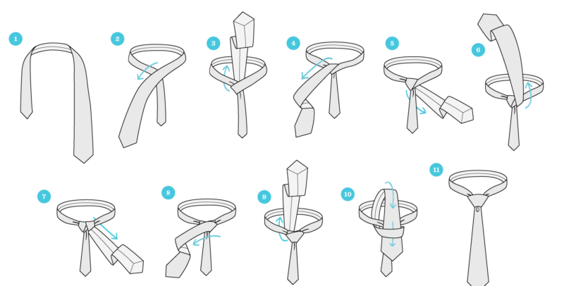 Ainsi, attacher des liens n'est rien compliqué. Les mouvements principaux sont simples et varient entre eux en fonction du nombre de révolutions. Avec ces instructions simples, vous pouvez facilement apprendre à nouer une cravate avec les nœuds les plus classiques.