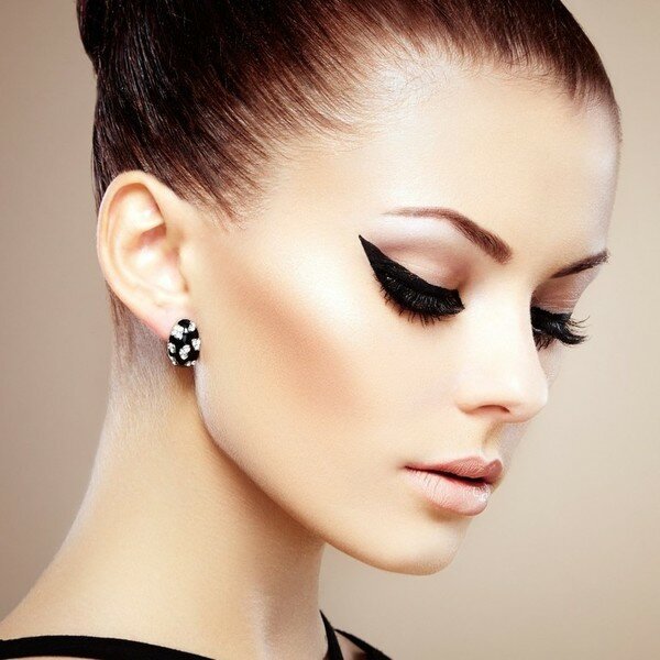 Version classique avec noir eye-liner Parfait pour les filles avec une teinte brun foncé. La couleur noire mettra bien en valeur la coupe des yeux, approfondira la nuance naturelle et rendra le regard plus mystérieux. En maquillage de soirée, ne vous limitez pas à l'eye-liner noir. Vous pouvez utiliser des eye-liners dans les tons violet et marron qui accentuent efficacement la couleur des yeux.