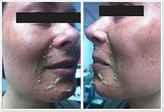 Parallèlement, la peau commence à se régénérer indépendamment. La quantité de fibres de collagène et d'élastine augmente, les "nouvelles" cellules produites remontent à la surface, remplaçant l'ancienne couche morte. Dans le même temps, la peau du visage a l'air rougie, un pelage apparaît, un gonflement et une sensation de brûlure / démangeaison grave sont possibles. Mais tous ces phénomènes après la procédure sont considérés comme absolument normaux et, malheureusement, les conséquences ne se limitent pas à un pelage banal. Il y a des effets secondaires plus graves. À réactions de peeling atypiques porter les symptômes suivants: