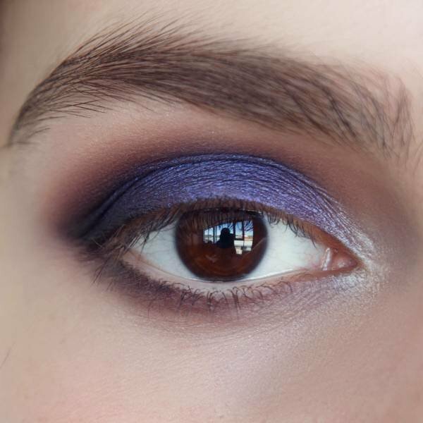 Étape 3: Appliquer des ombres violettes Choisissez des teintes mauve ou lilas foncé avec un éclat nacré. Ils doivent être appliqués sur la paupière en mouvement, y compris un coin sombre en surbrillance. Ombre soigneusement ombre.