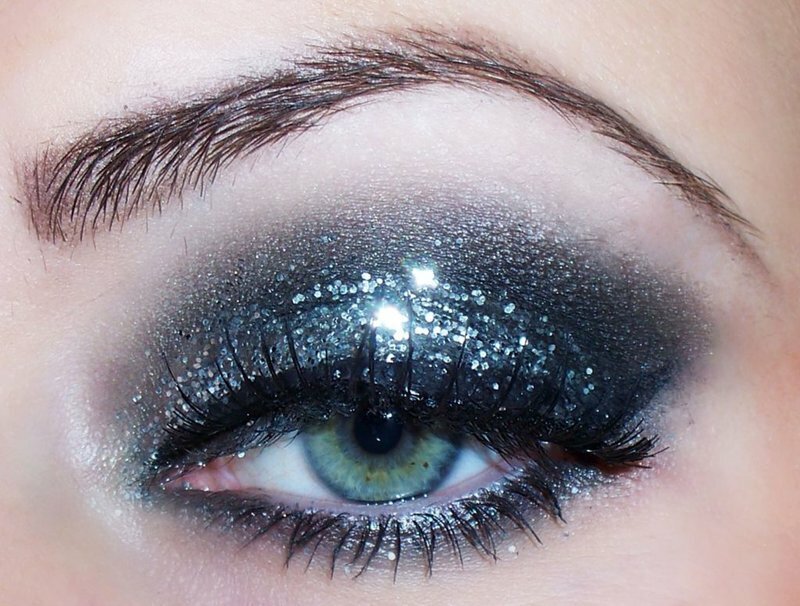 Les teintes pour le maquillage dépendent directement de la couleur des cheveux et des yeux. Cependant, il existe un certain nombre d'ombres universelles et de eye-liners avec des paillettes qui peuvent donner toute image de fête et d'expressivité, par exemple: doré et violet métallisé.