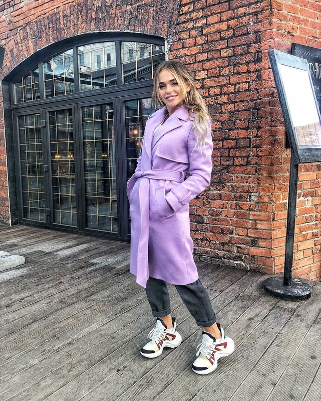 Anna Khilkevich, bien sûr, a également ce modèle de chaussures de sport dans la collection. Au fait, comment aimez-vous la combinaison avec un manteau de lavande?